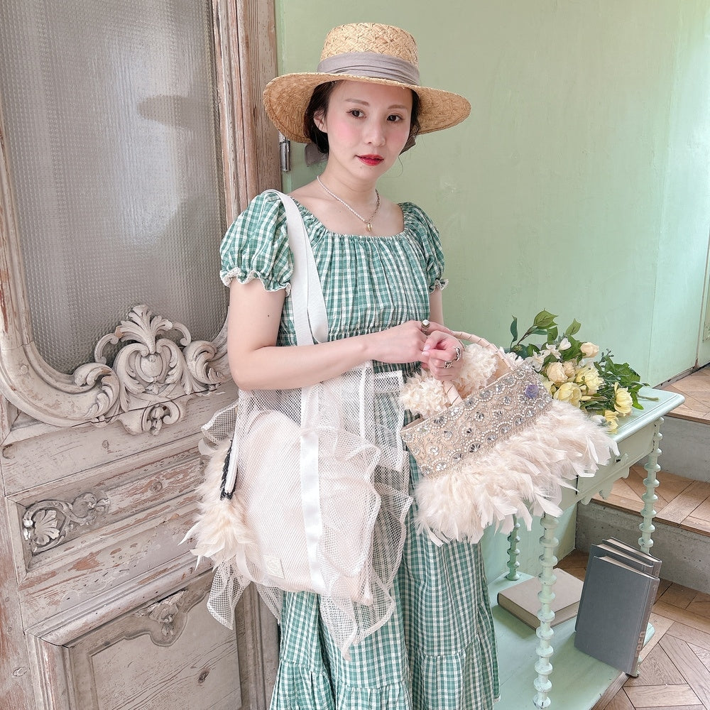 ■テープ、フェザー、ビジュー等の装飾品は大変繊細ですので、お取り扱いには十分ご注意ください。