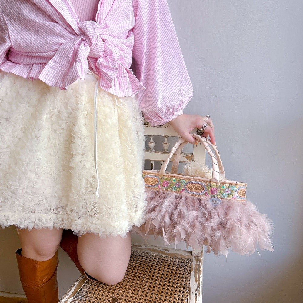 ふんわりフェザーがパニエのように広がる