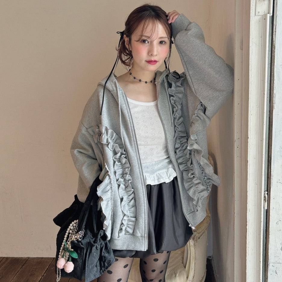 たっぷりフリルのパーカーでキュート全開