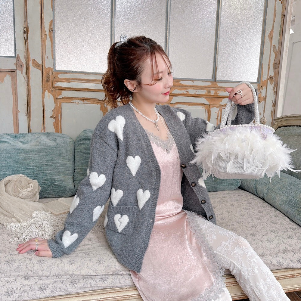 ハートがガーリーなほっこりカーデ