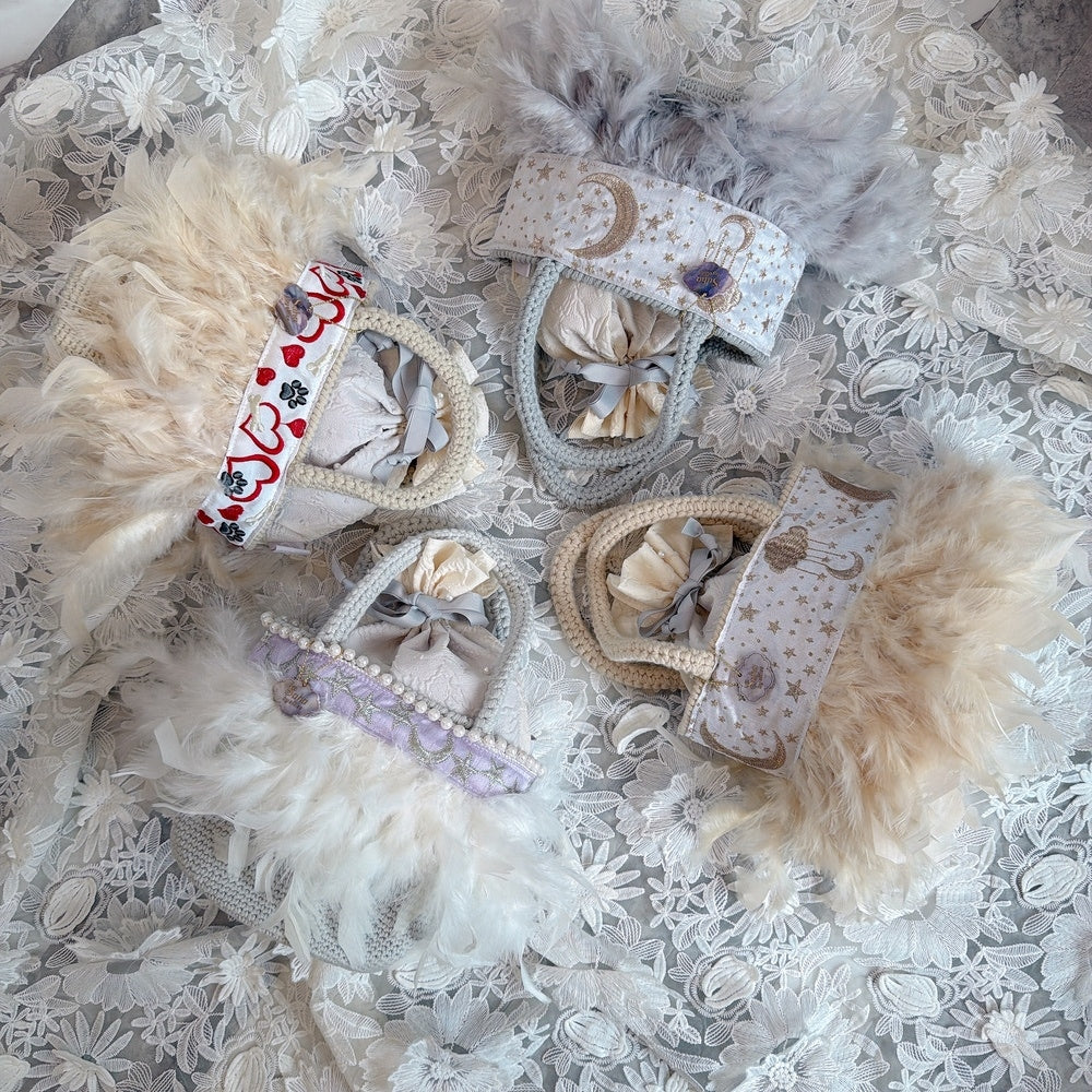 ■テープ、フェザー、ビジュー等の装飾品は大変繊細ですので、お取り扱いには十分ご注意ください。