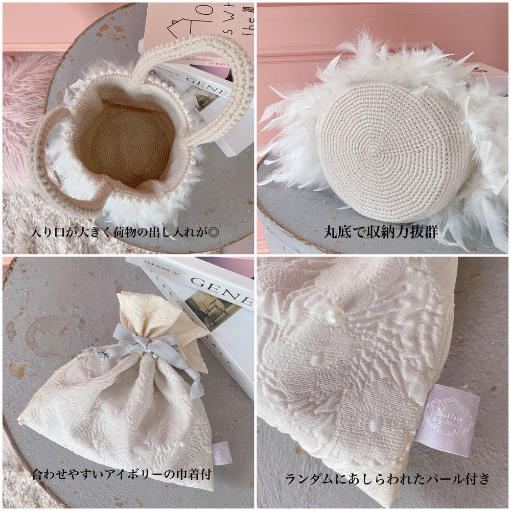アイボリーのミニ巾着がセットされているので