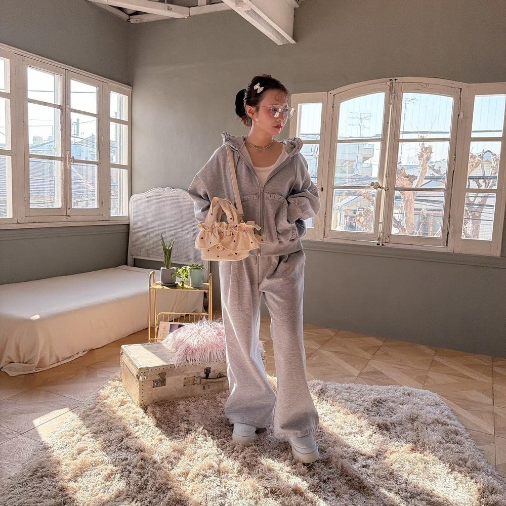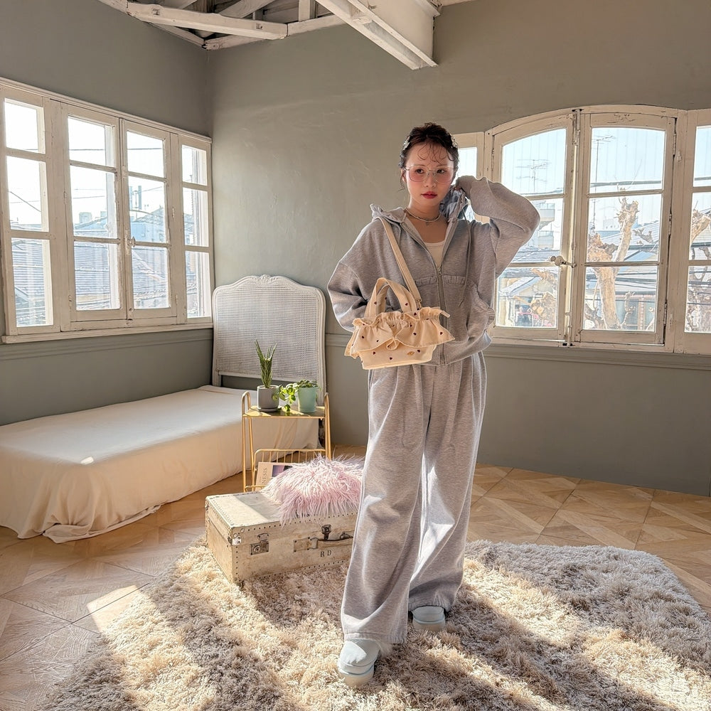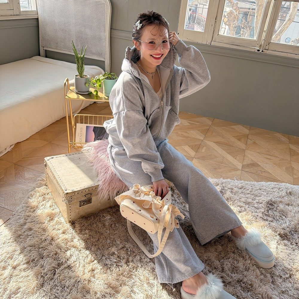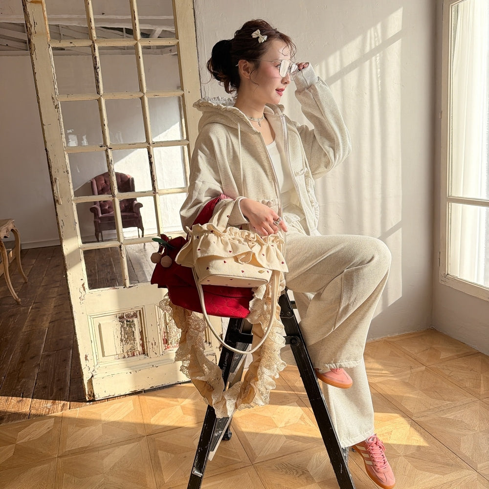 裏起毛のフリルスウェットがガーリー