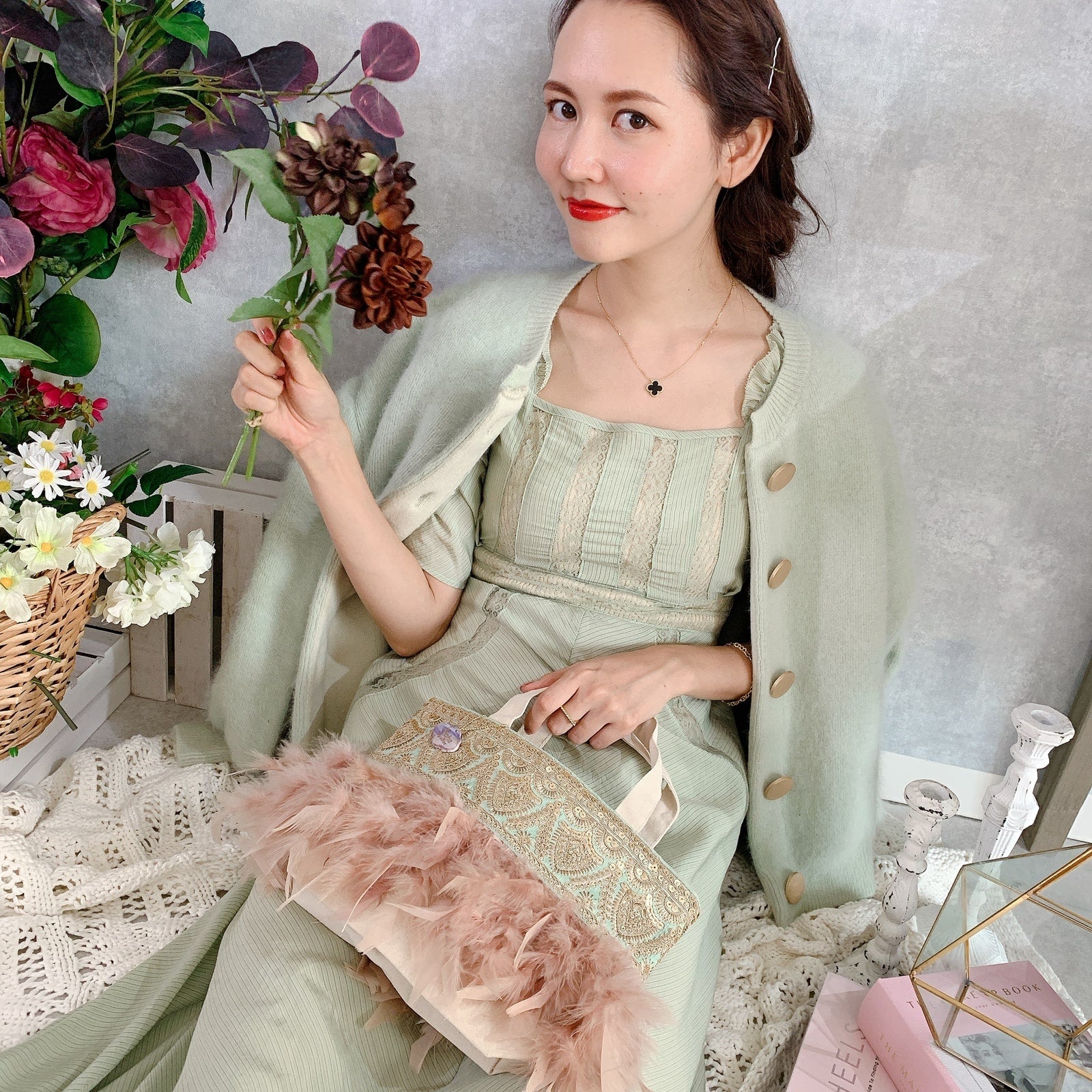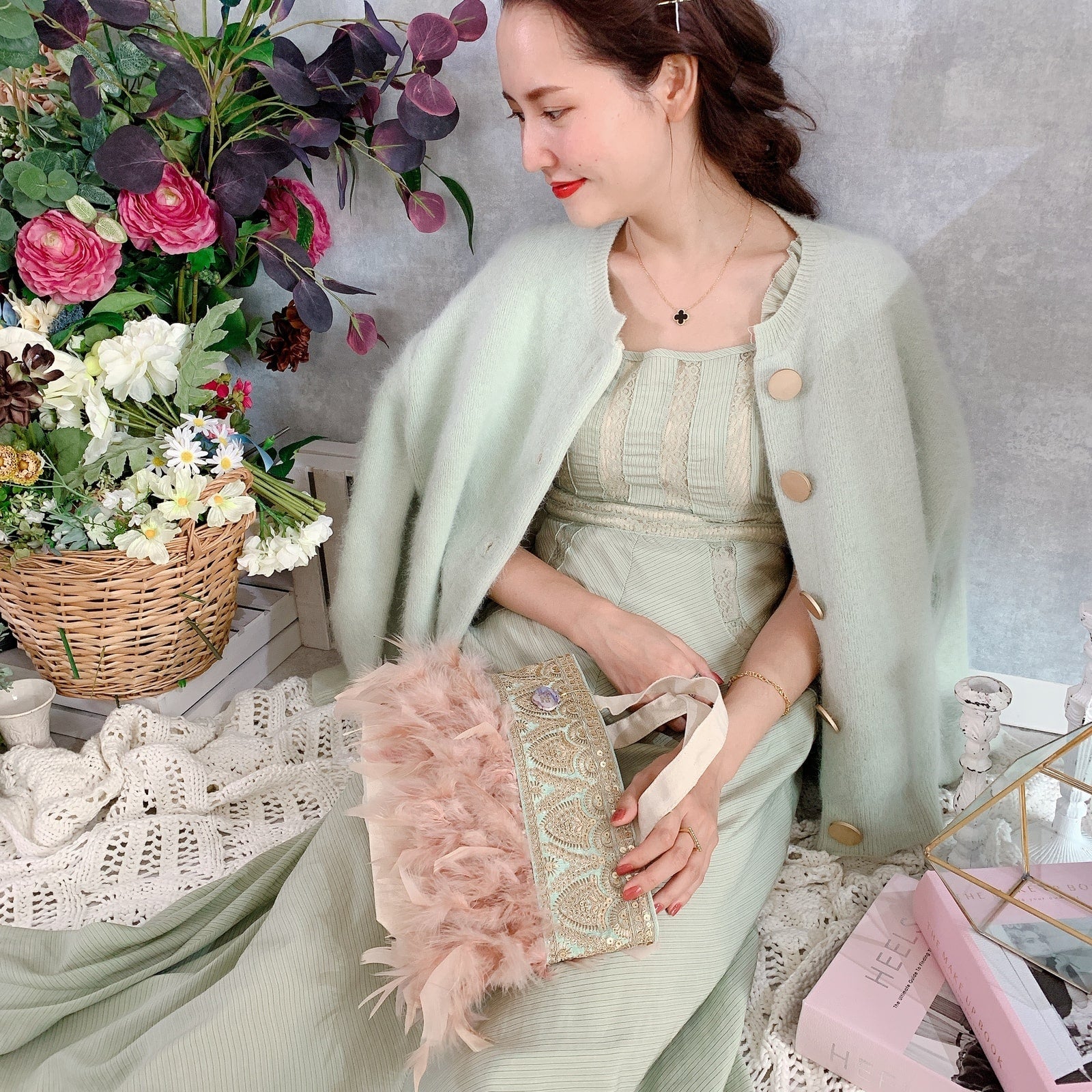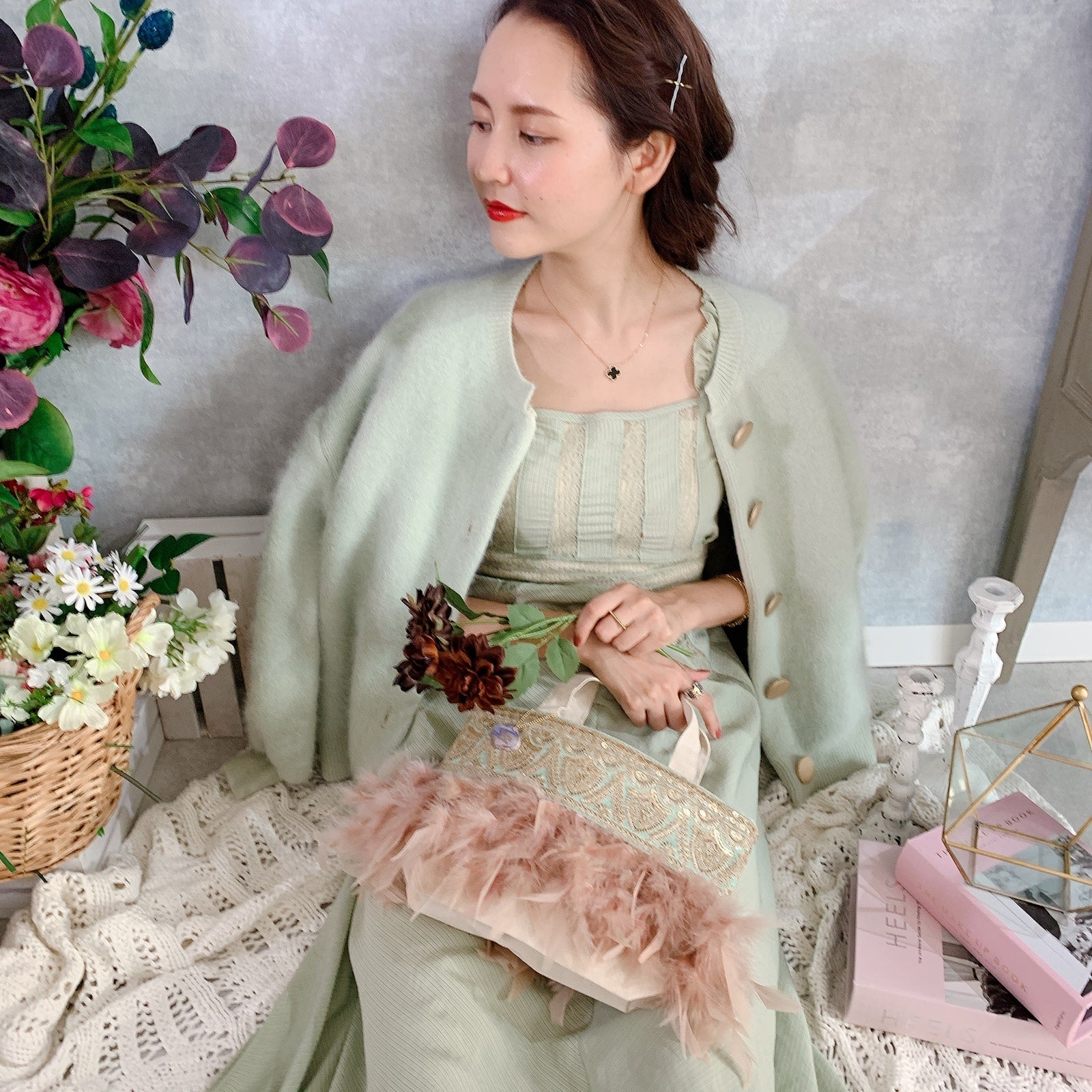 fluffyなふわふわフェザーとデコラティブなテープの組み合わせに、