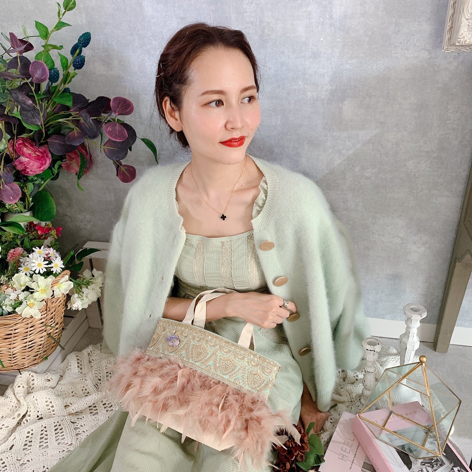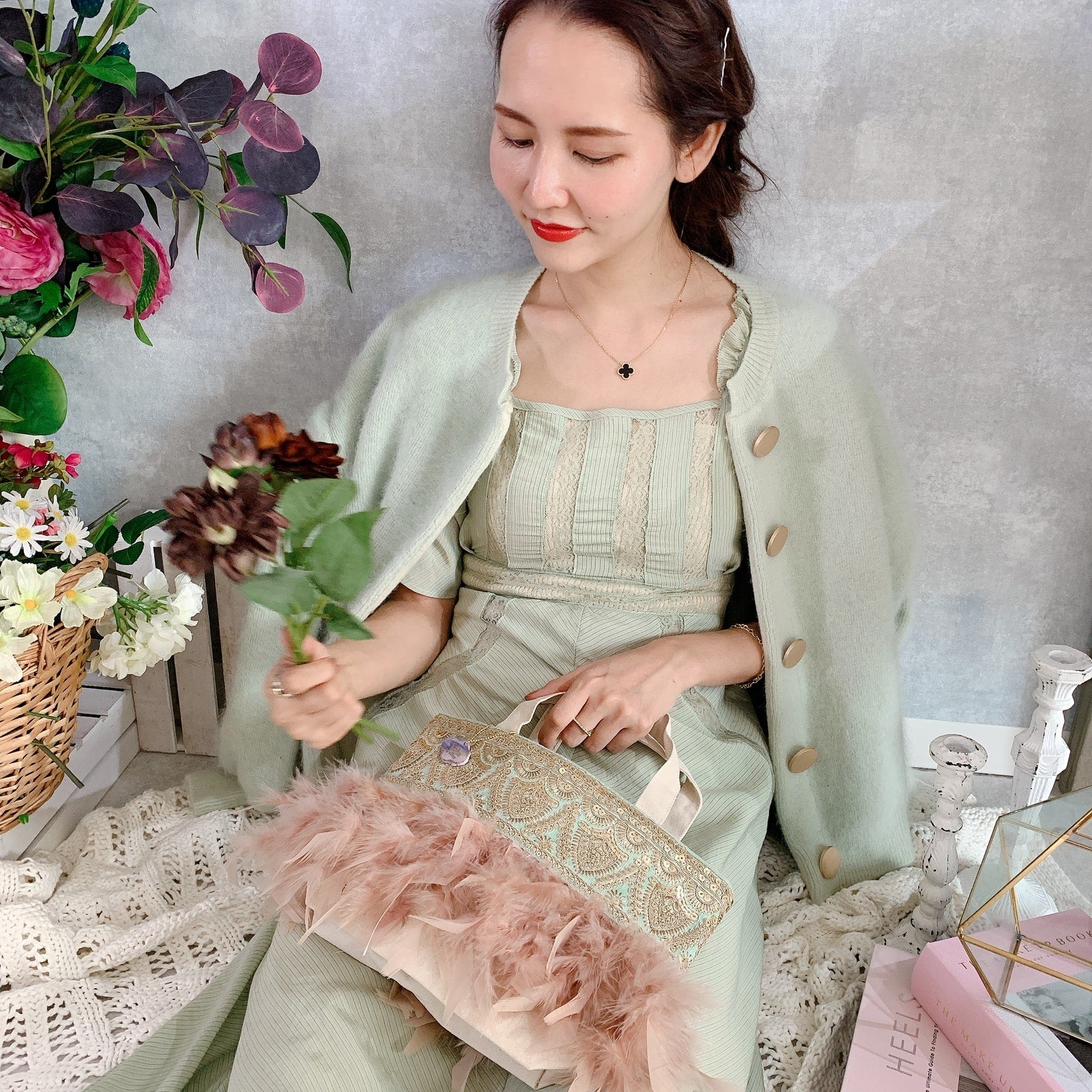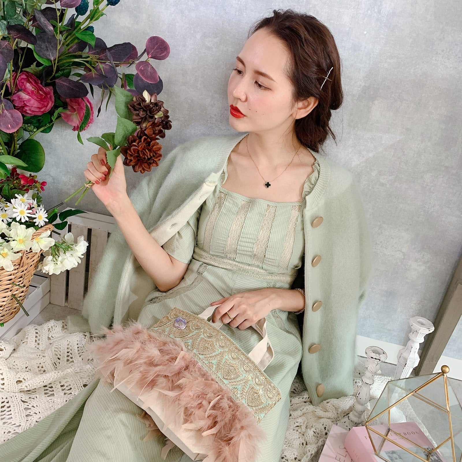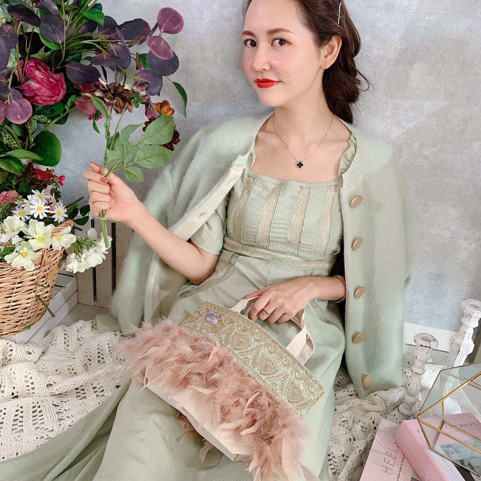 fluffyなふわふわフェザーとデコラティブなテープの組み合わせに、