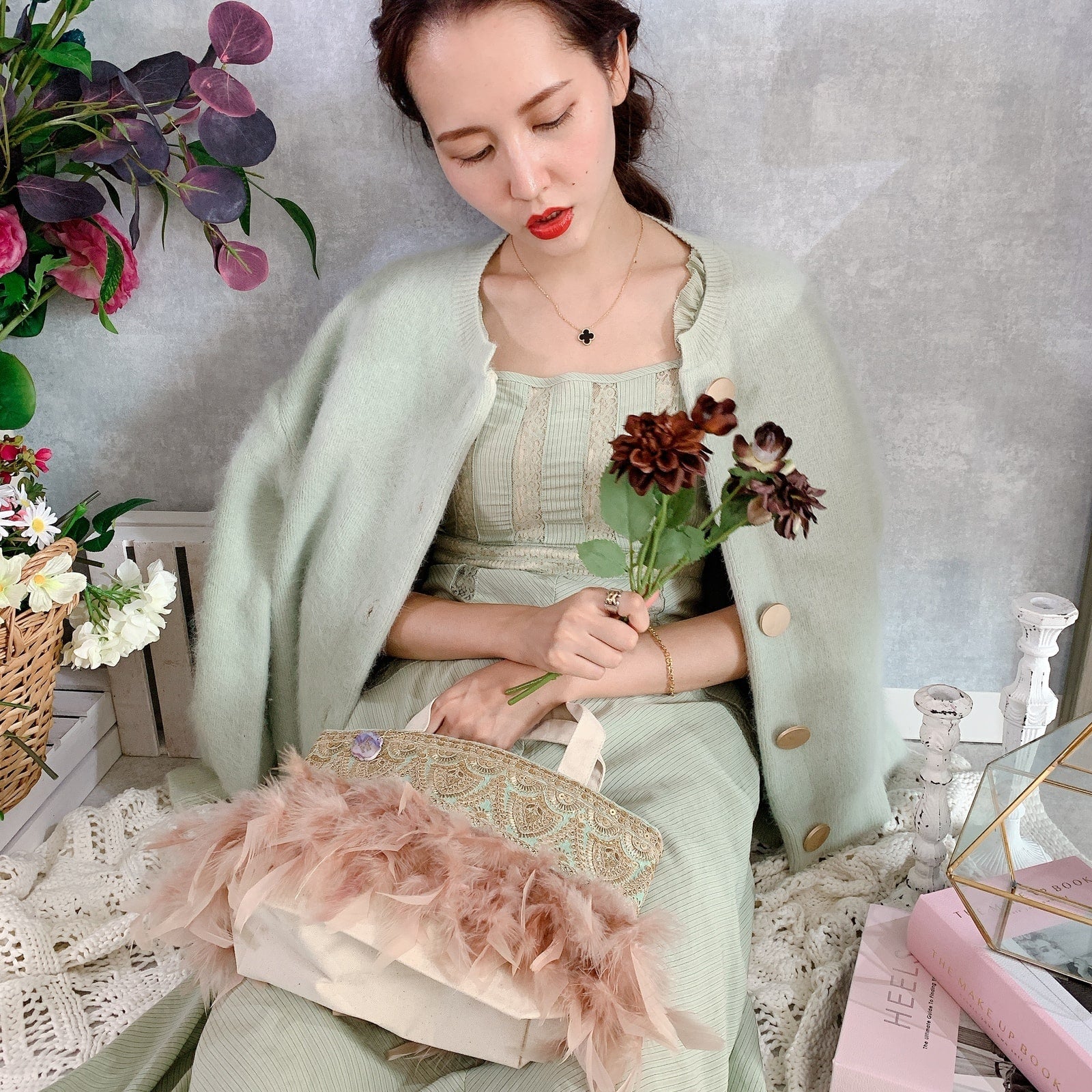■テープ、フェザー、ビジュー等の装飾品は大変繊細ですので、お取り扱いには十分ご注意ください。