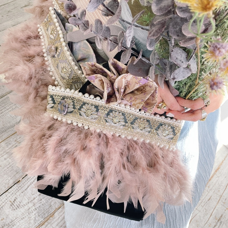 特にフェザーに関しましては天然素材のため、色ムラ、長さ、ボリュームに個体差が生じることがございます。