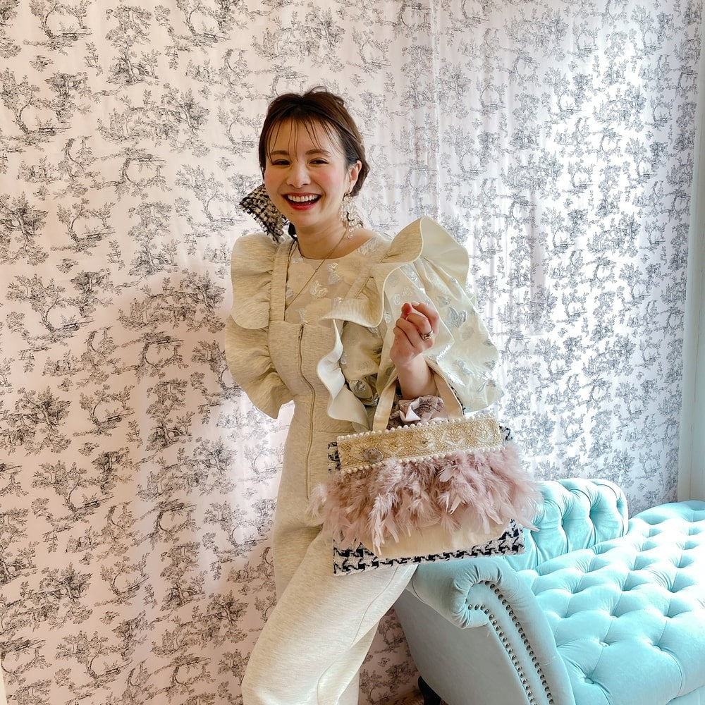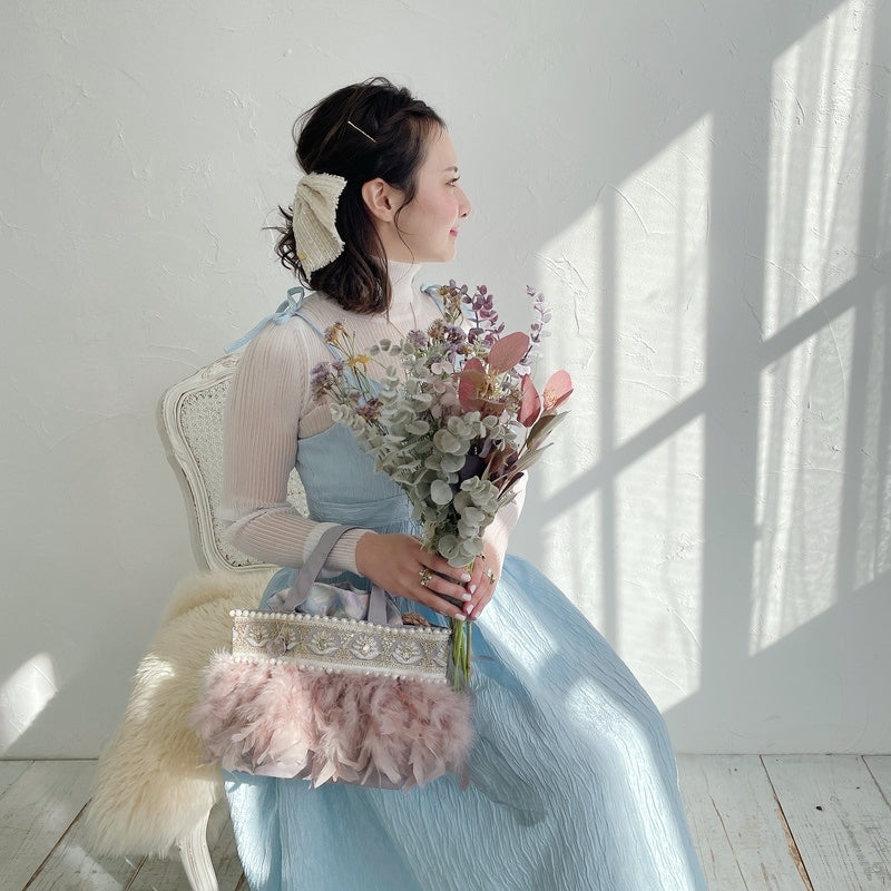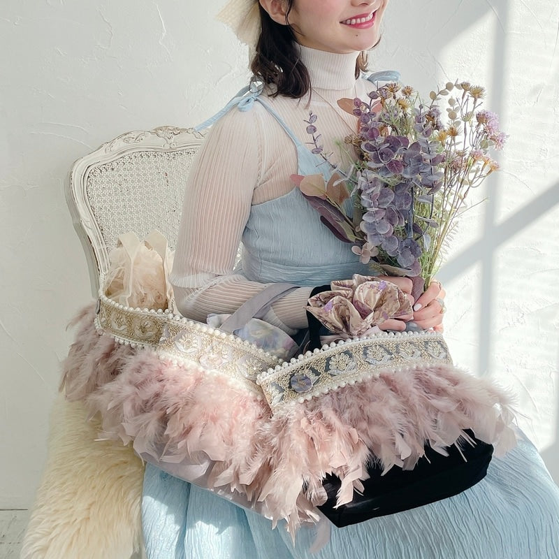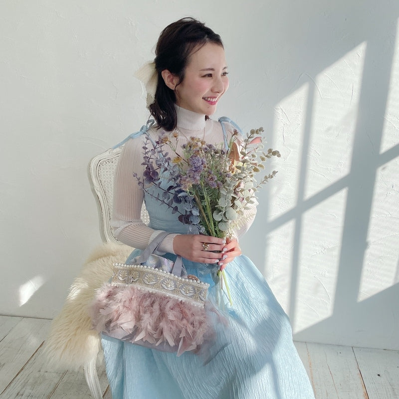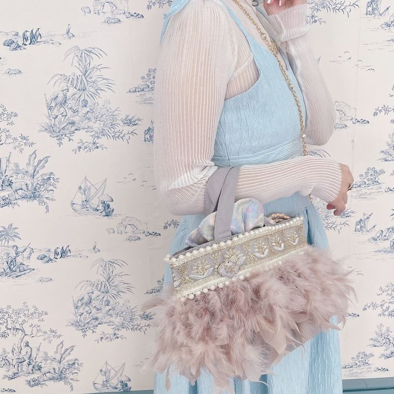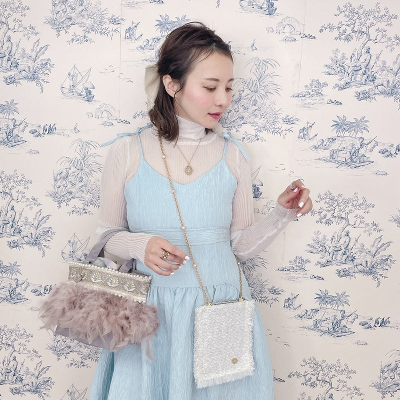 ■商品画像は、照明の関係により、実際よりもやや明るく見える場合がございます。 ****************************************** BAG ■【Fluffyシリーズ】インポートのテープを使用し、手作業でお作りしております。そのため商品画像との色ムラ、大きさ、装飾、縫製などの個体差が生じることがありますが、欠陥品ではございません。 ■【Fluffyシリーズ】発送時の梱包により、開封時はフェザーのボリュームが少なく感じますが、空気を含むとボリュームが復活します。 また、フェザー部分は大変繊細なので、使用しているうちに抜け落ちることがございますが、材質特性上でありますことをご理解くださいませ。 ■テープ、フェザー、ビジュー等の装飾品は大変繊細ですので、お取り扱いには十分ご注意ください。 ■水に濡れたり、日光にあたった場合色落ちする事がございます。 ■【カゴバッグ】天然素材を使用しておりますので、色合いやサイズ、仕上がりの風合いが1点1点異なります。 ****************************************** Apparel【海外製品の特性(品質)について】 一部のインポート製品は日本の製品と比べ品質基準が甘く、下記のような商品も含まれます ●着用に問題のない縫製の歪み、あまさ ●柄生地の柄の場所や出方、生地のつなぎが異なる ●裏地(表から見えない部分)の小さな傷、ツレ ●裏地(表から見えない部分)のシミや汚れ ●梱包材や染料のにおい これらの製品も、販売するにあたり差し障りのないものと判断されており、良品(通常の商品)として流通、販売されております。 当店でも商品1点ずつ検品し、海外の品質基準を満たしているもの、ご着用に問題がないことを確認の上、販売しておりますご了承の上、ご検討くださいませ
