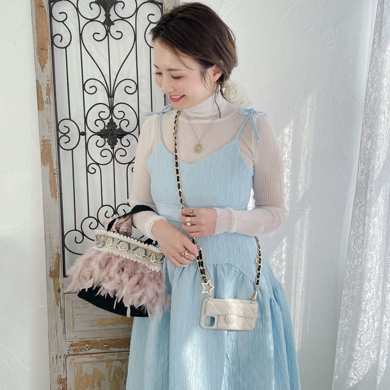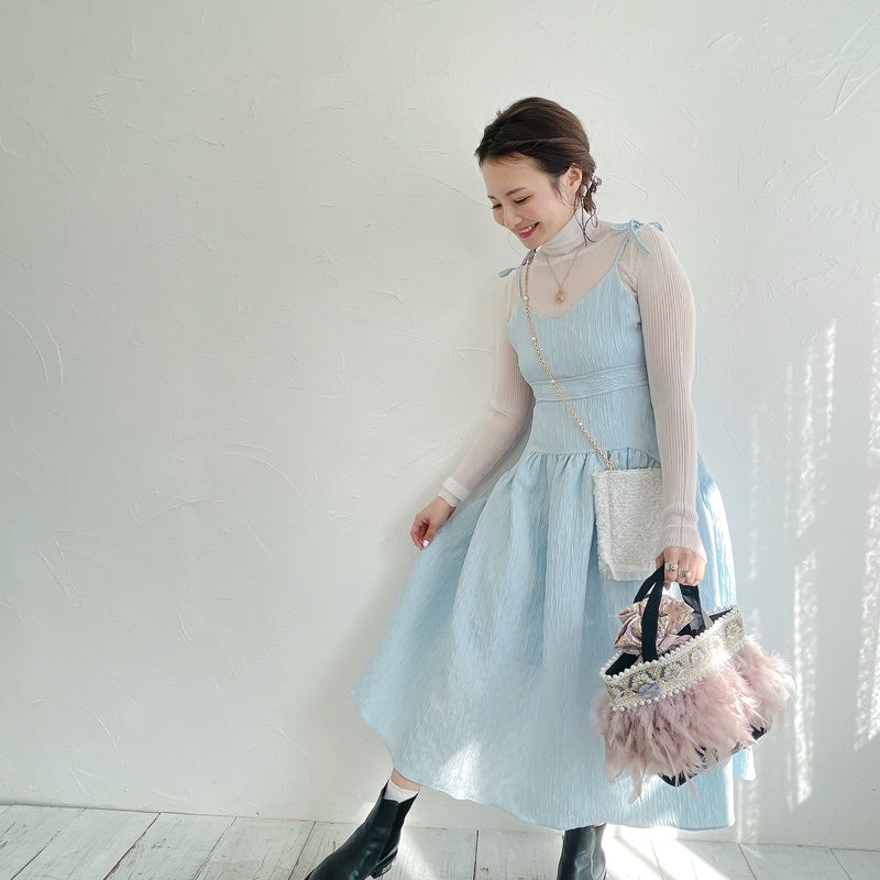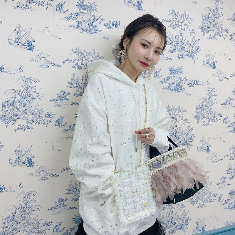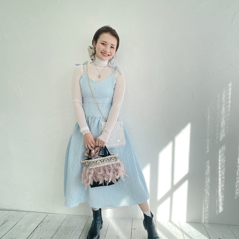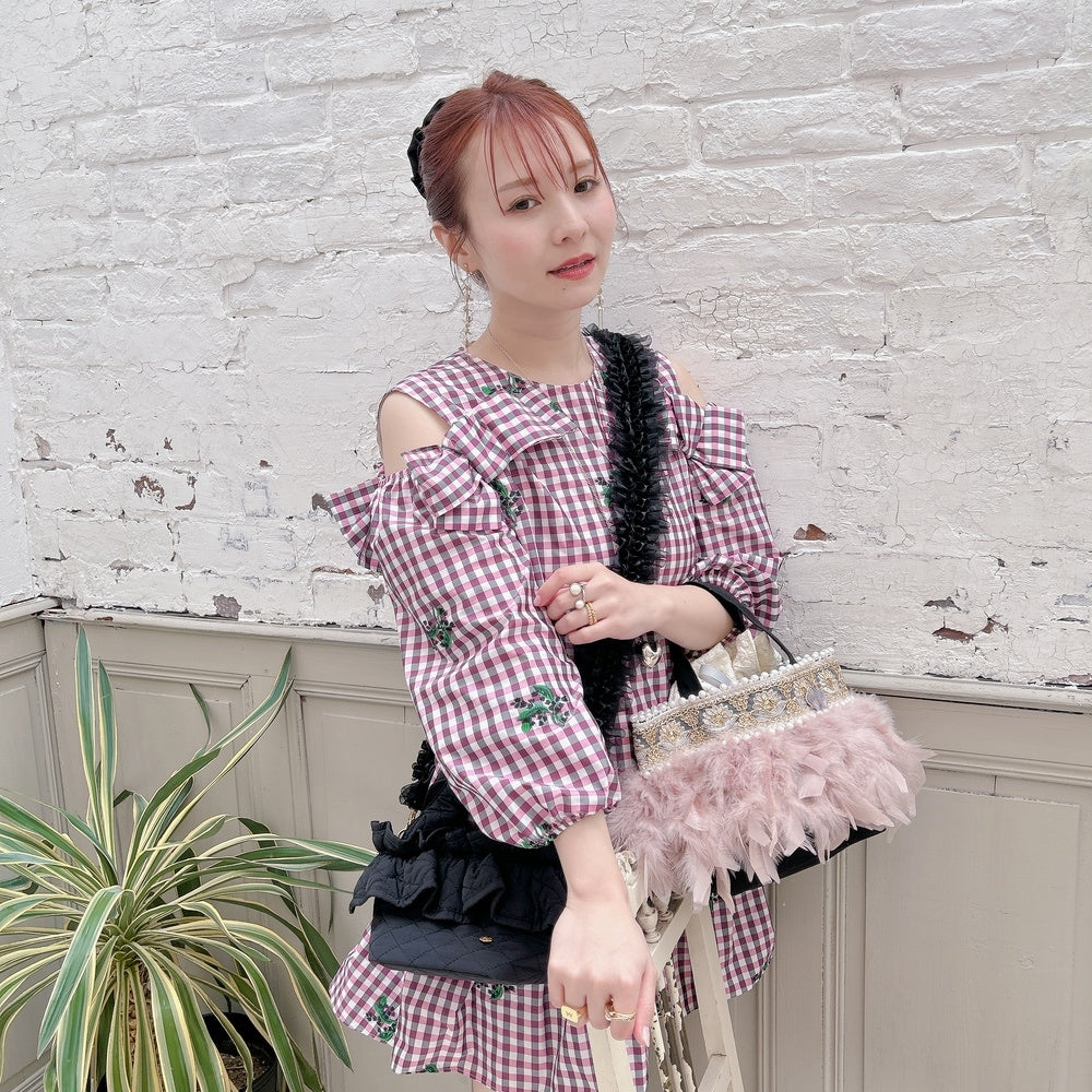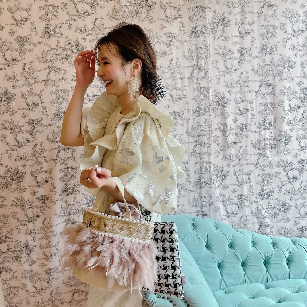 ■商品画像は、照明の関係により、実際よりもやや明るく見える場合がございます。 ****************************************** BAG ■【Fluffyシリーズ】インポートのテープを使用し、手作業でお作りしております。そのため商品画像との色ムラ、大きさ、装飾、縫製などの個体差が生じることがありますが、欠陥品ではございません。 ■【Fluffyシリーズ】発送時の梱包により、開封時はフェザーのボリュームが少なく感じますが、空気を含むとボリュームが復活します。 また、フェザー部分は大変繊細なので、使用しているうちに抜け落ちることがございますが、材質特性上でありますことをご理解くださいませ。 ■テープ、フェザー、ビジュー等の装飾品は大変繊細ですので、お取り扱いには十分ご注意ください。 ■水に濡れたり、日光にあたった場合色落ちする事がございます。 ■【カゴバッグ】天然素材を使用しておりますので、色合いやサイズ、仕上がりの風合いが1点1点異なります。 ****************************************** Apparel【海外製品の特性(品質)について】 一部のインポート製品は日本の製品と比べ品質基準が甘く、下記のような商品も含まれます ●着用に問題のない縫製の歪み、あまさ ●柄生地の柄の場所や出方、生地のつなぎが異なる ●裏地(表から見えない部分)の小さな傷、ツレ ●裏地(表から見えない部分)のシミや汚れ ●梱包材や染料のにおい これらの製品も、販売するにあたり差し障りのないものと判断されており、良品(通常の商品)として流通、販売されております。 当店でも商品1点ずつ検品し、海外の品質基準を満たしているもの、ご着用に問題がないことを確認の上、販売しておりますご了承の上、ご検討くださいませ
