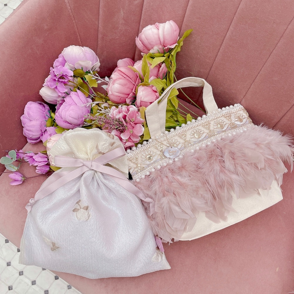 特に、引っ張ったり、引っ掛けたりすると装飾やフェザーの破損の原因となります。
