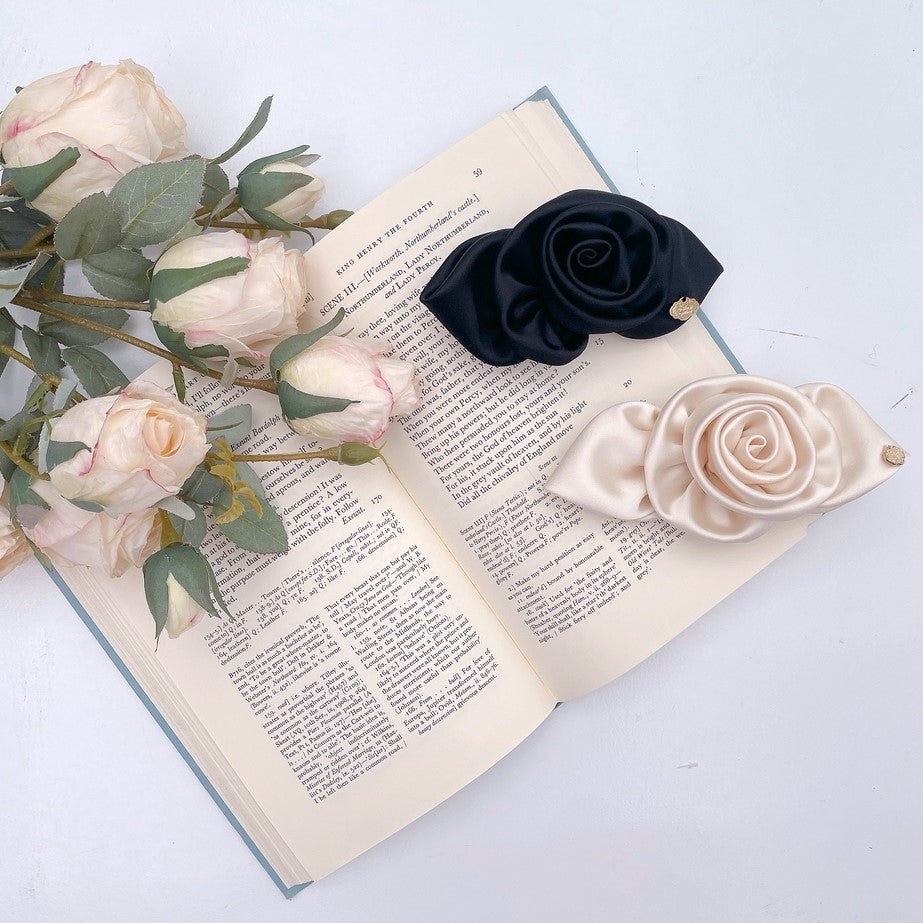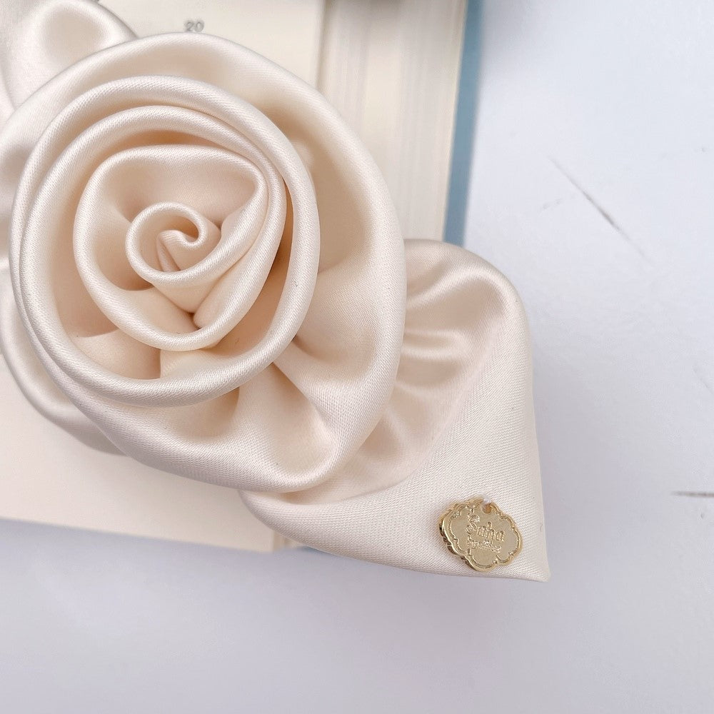 上品な光沢とボリューミーなローズ&リボンが